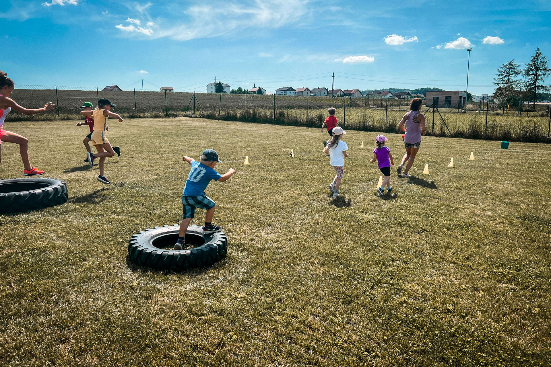 Mit Spielen, die Kraft, Ausdauer, Gleichgewicht, Geschicklichkeit und Reaktionsvermögen fördern. Von Hindernisläufen bis Parcours und Zirkeltraining – wir freuen uns miteinander an viel Bewegung im Freien.